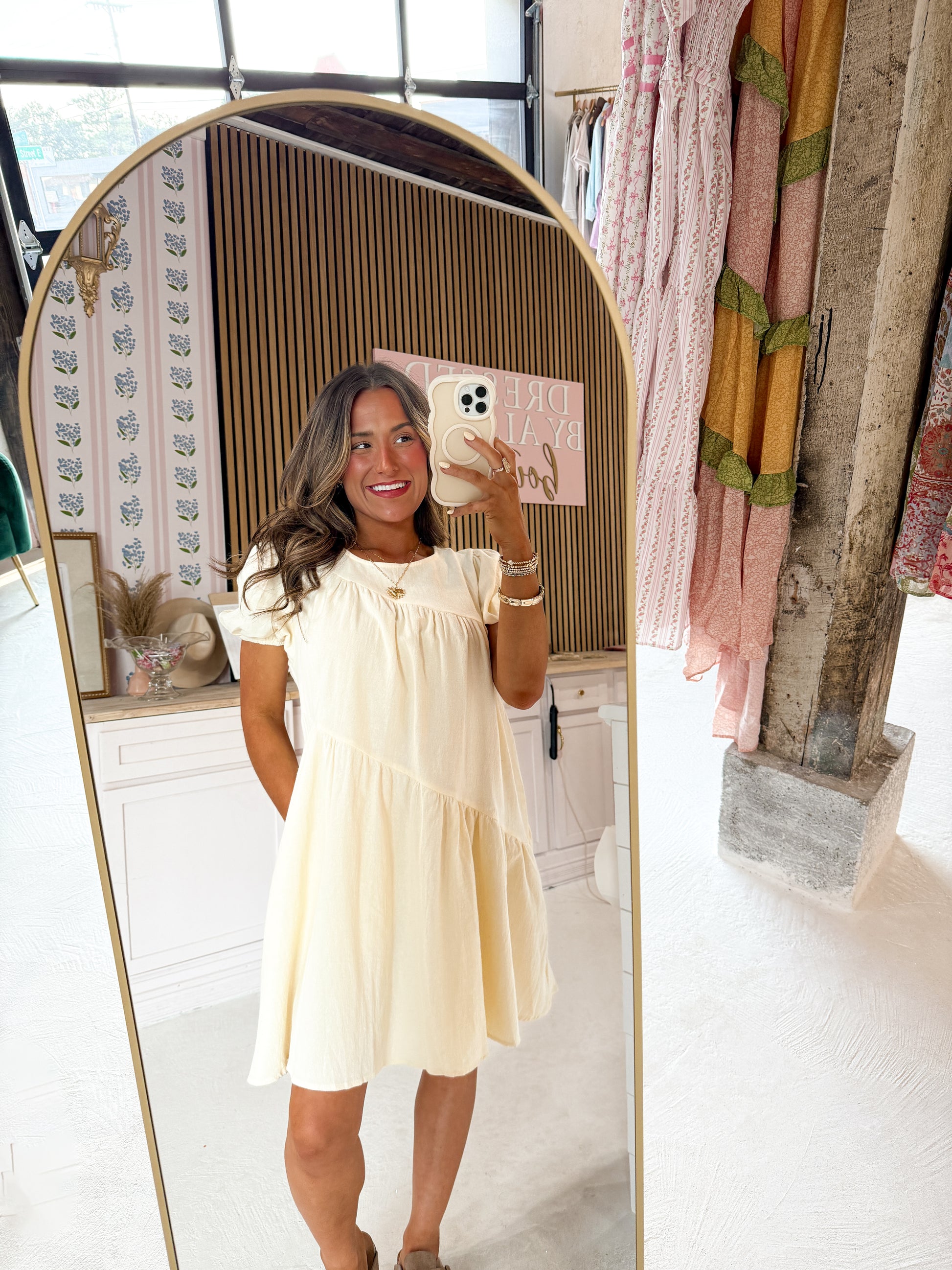 cream mini dress